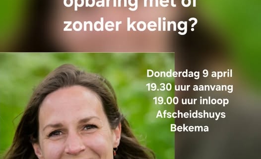 Zij komt vertellen over de verschillende manieren van opbaren, waaronder thanatopraxie (een lichte balseming), één van de manieren van opbaren zonder koeling.